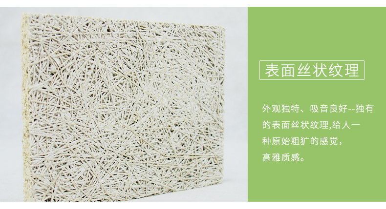 3、表面丝状纹理,外观独特、吸音良好,独有的表面丝状纹理,给人一种原始粗犷的感觉,高雅质感。
